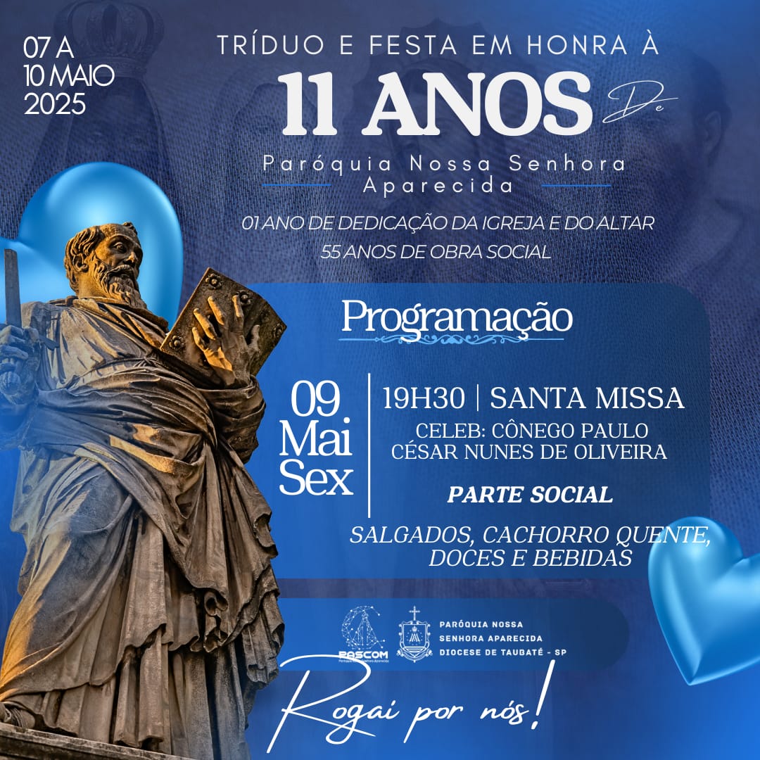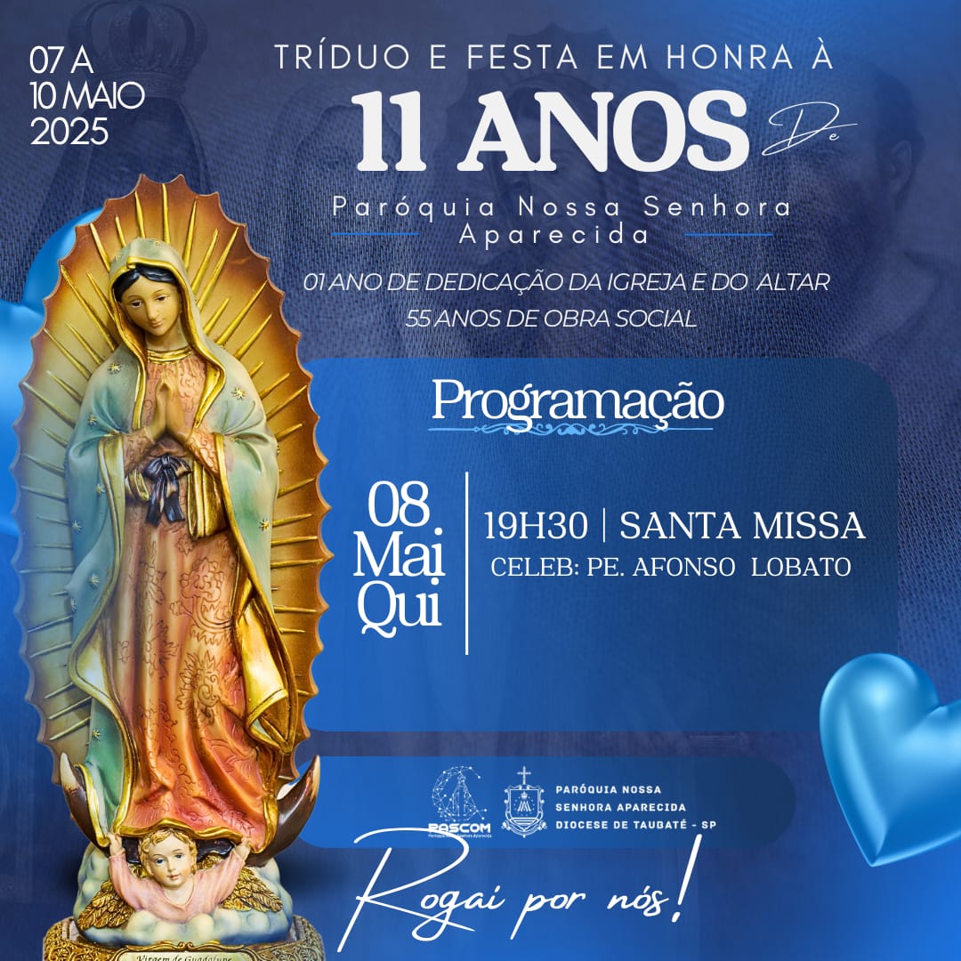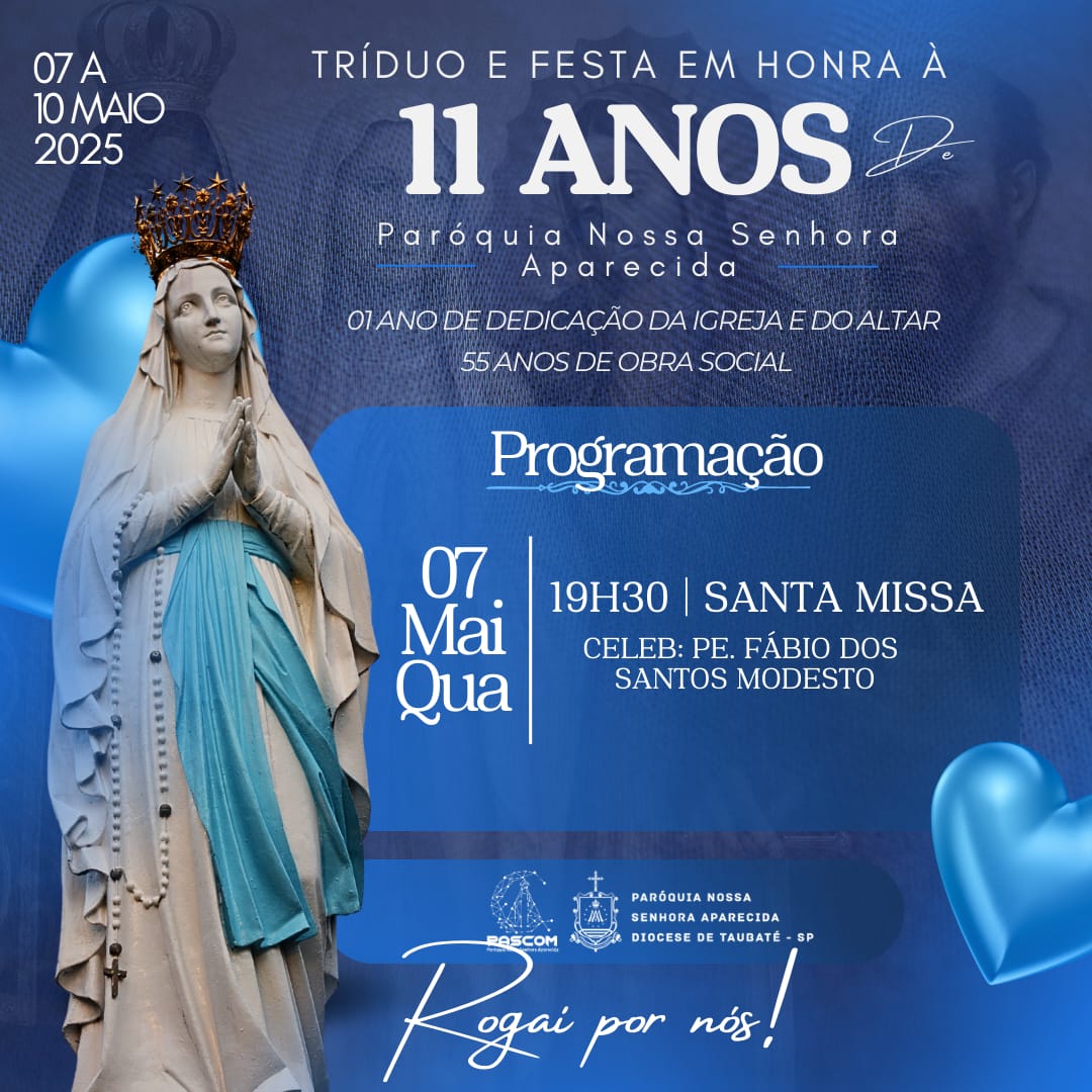 Confira os dias, horários e locais das missas em nossa paróquia.